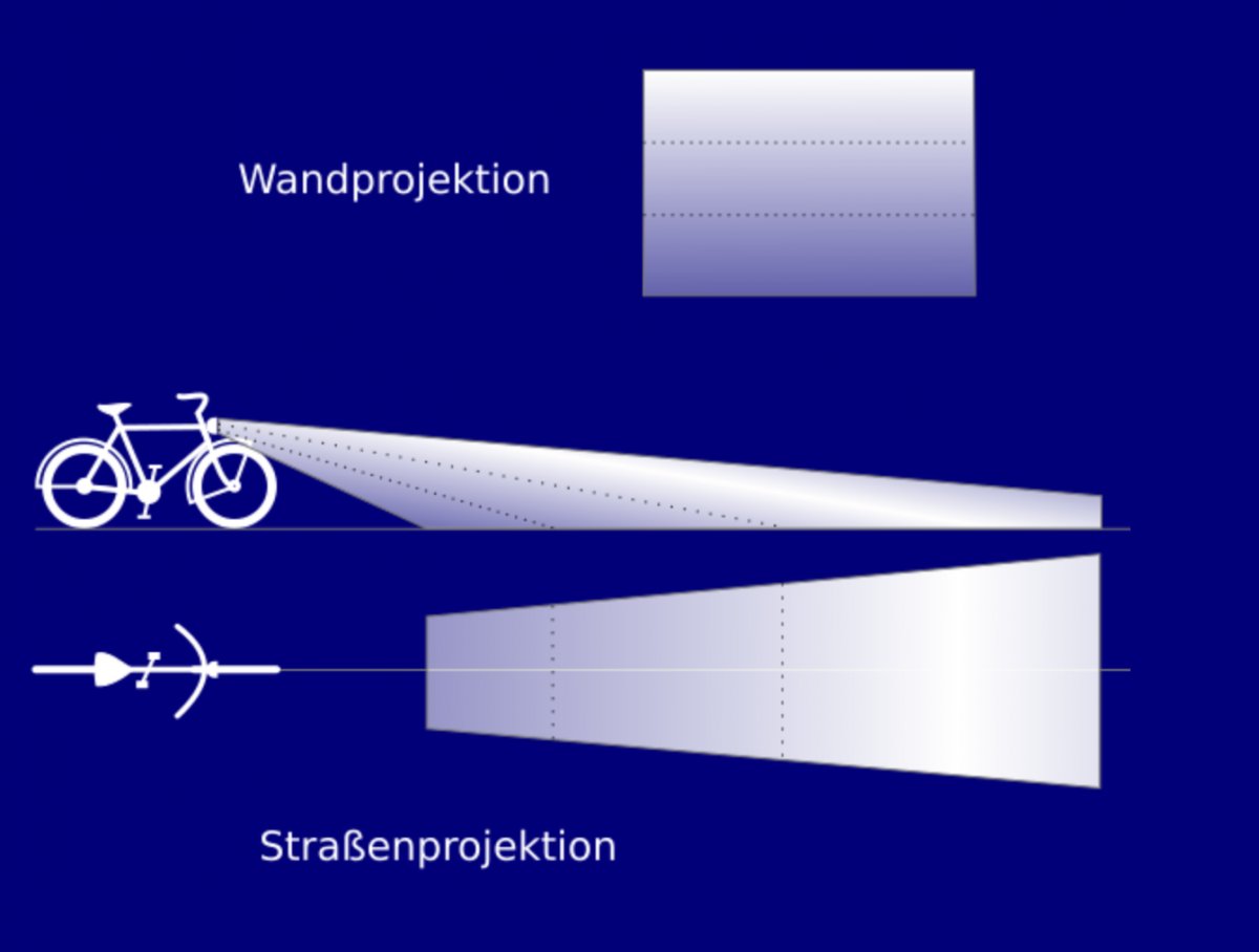 Der optimale Lichtkegel ist geschichtet, hat in der Wandprojektion an der Oberkante einen sehr hellen Streifen (hohe Lux-Werte) mit scharfer Hell-Dunkel-Grenze und wird nach unten kontinuierlich dunkler. Richtig eingestellt erzeugt ein solcher Scheinwerfer eine sehr gleichmäßige Ausleuchtung, mit der eine weite Sicht möglich ist.